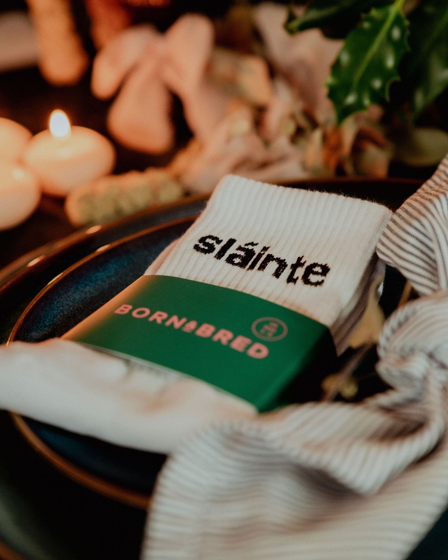 Raise a toast with every step in these playful Sláinte Socks from Born & Bred. Designed to celebrate good health and cheer, they bring a fun, spirited vibe to your wardrobe while keeping your feet snug and stylish. Perfect for sharing smiles and good times wherever you go!