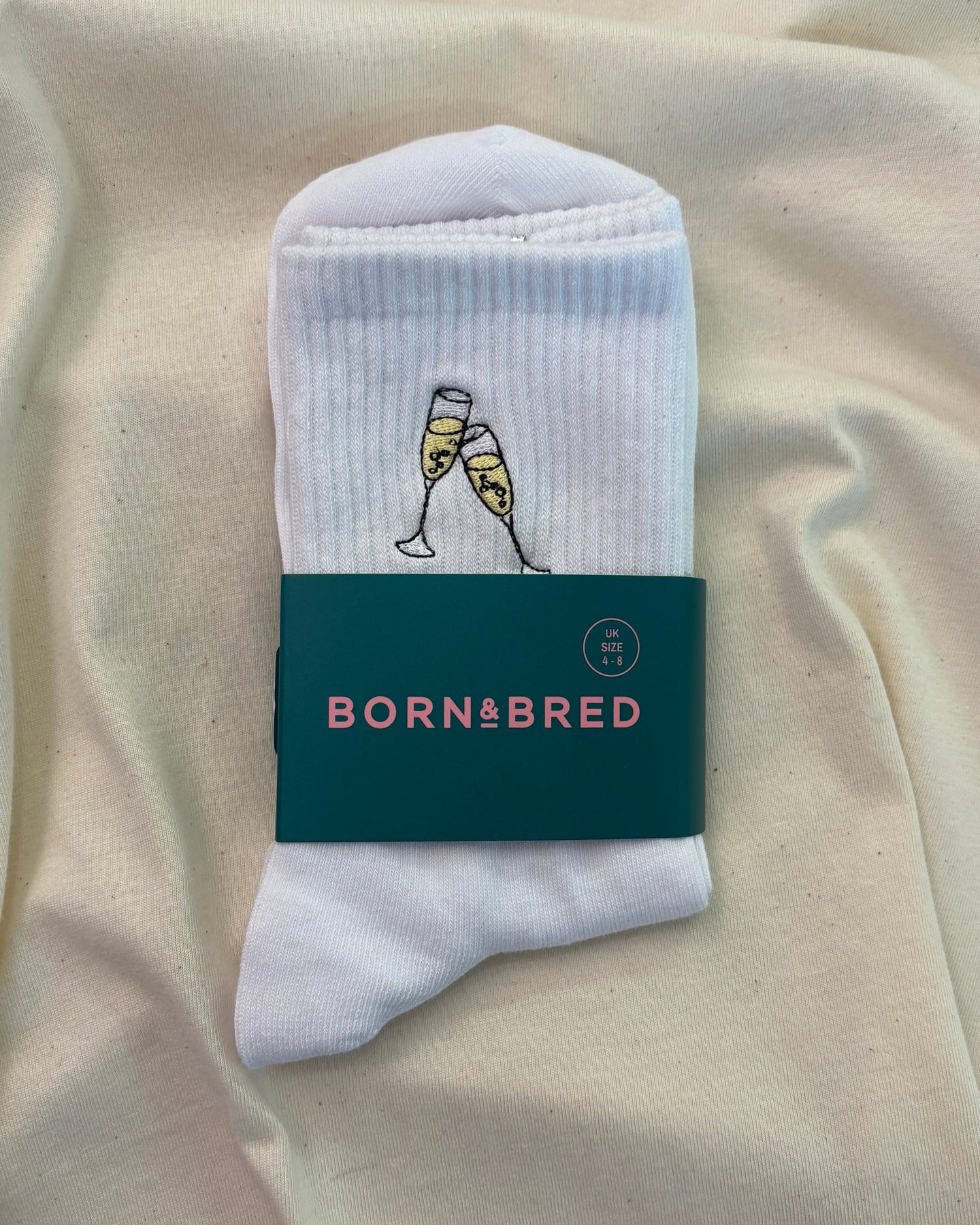 Step into fun with these playful Prosecco Socks from Born & Bred. Featuring charming embroidered prosecco glasses, they add a bubbly touch to your outfit while keeping your feet cozy. Perfect for celebrations or brightening up any day with a splash of sparkle and cheer.