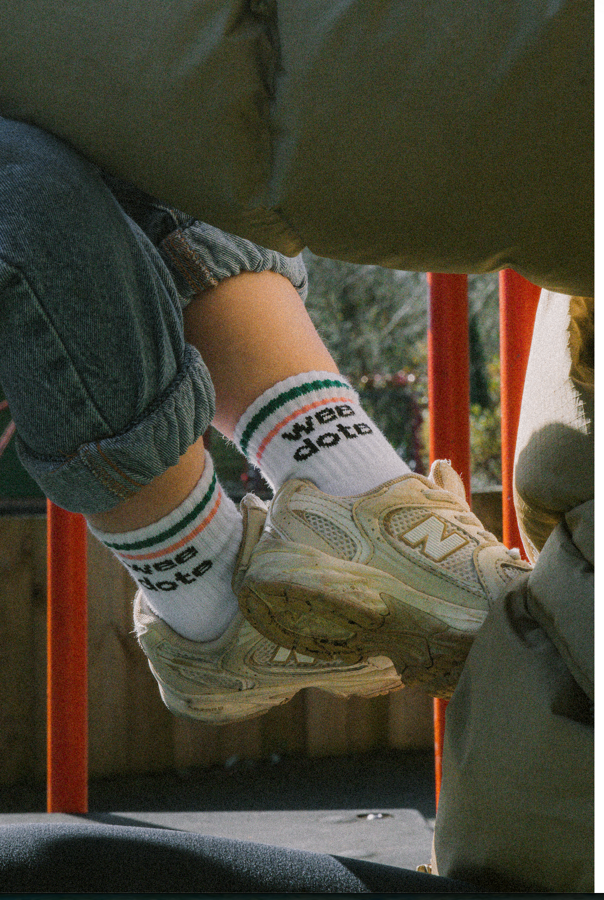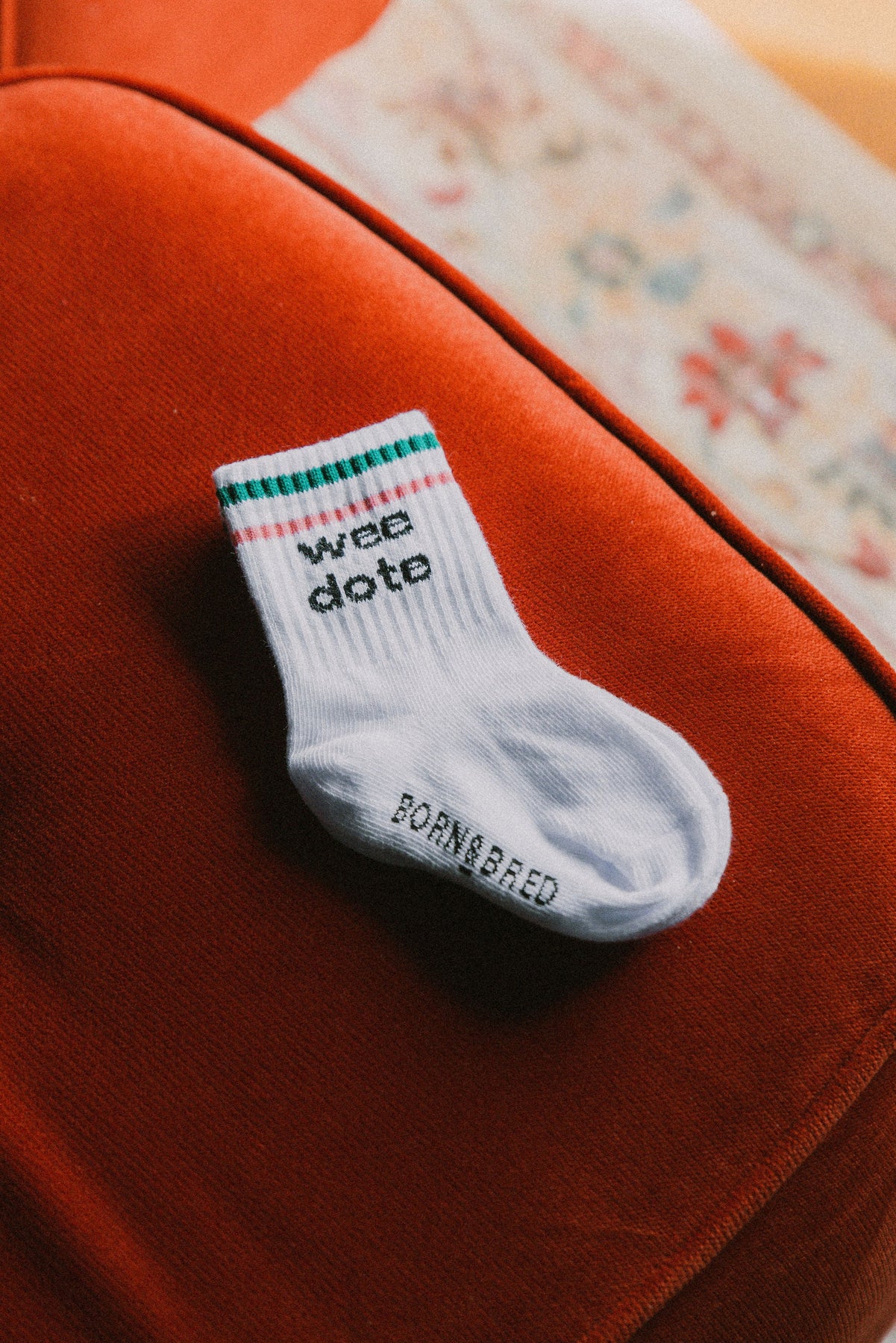 These adorable wee dote baby socks are bound to be a favourite for your little one! Featuring a white base with green and pink stripes at the top, they have a fun message on each side to make slipping them onto tiny feet quick and easy.
